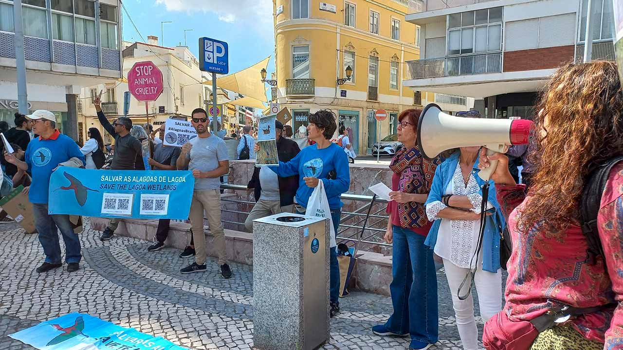 No Dia Mundial da Biodiversidade, cerca de 50 pessoas manifestam-se em Faro, contra a destruição das Alagoas Brancas, em Lagoa.